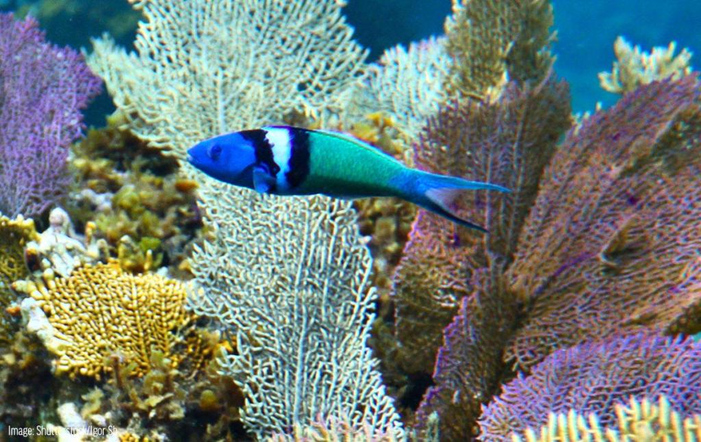 Steps Beach also had a rocky sea floor, so we saw some really cool fishes like the bluehead wrasse (picture below), a parrot fish, schools of small fish, and more.