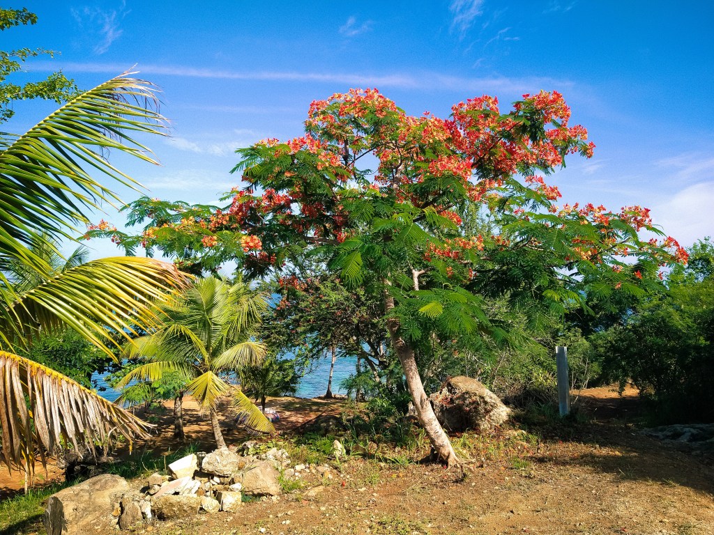 Playa Peña Blanca is gorgeous and we will definitely be back for more! Located in Aguadilla, Puerto Rico, it is along the same coast as the other snorkeling beaches we have visited. With a beautiful flowering tree to greet you upon your arrival, clear water, and ocean blues as far as the eye can see, it’s not only a great beach for snorkeling, but it’s a perfect beach for relaxing to the tranquil sounds of gentle waves.