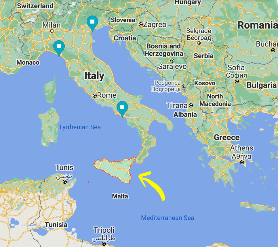 If you didn’t already know, Sicily is actually an island. It is the biggest island in Italy and in the Mediterranean Sea [1]. Sicily is home to some gorgeous beaches, historic archeological ruins, and Mount Etna – an active volcano.