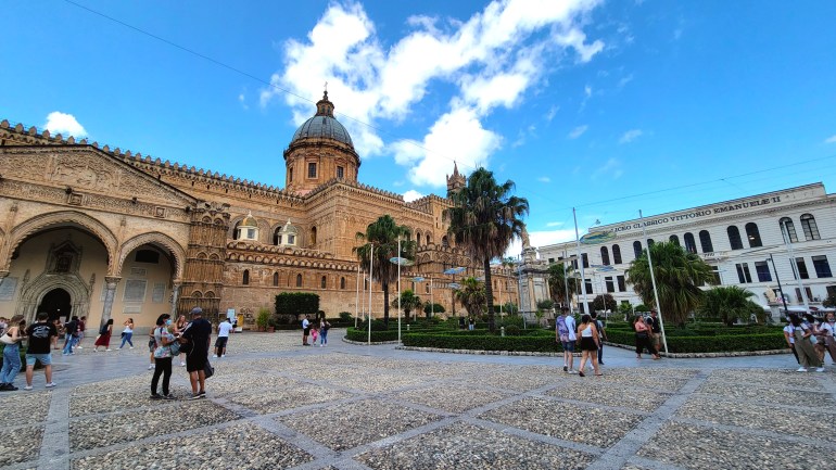 - Both Palermo and Monreale have iconic architecture. In Palermo, we visited the Cattedrale di Palermo. You can freely enter the main cathedral, but spending a few euros for a tour of other sections and the rooftop was worth it! We could enjoy a nice panoramic view of Palermo and the sea. (In Sicily, like Puerto Rico, the sea is always a hop-skip-jump away!) In Monreale, you can visit also visit the Cattedrale di Montreale. It is a national monument in Italy and one of the main attractions in Sicily. This cathedral is one of the greatest examples of Norman architecture.